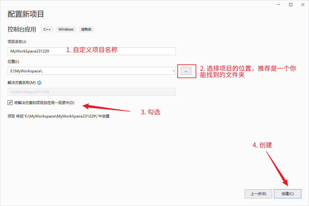 3. 按照下图所示修改项目信息,完成后点击创建: