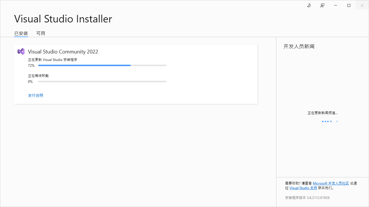 2. 准备VS安装程序中,请耐心等待(预计需要等待2~5分钟):