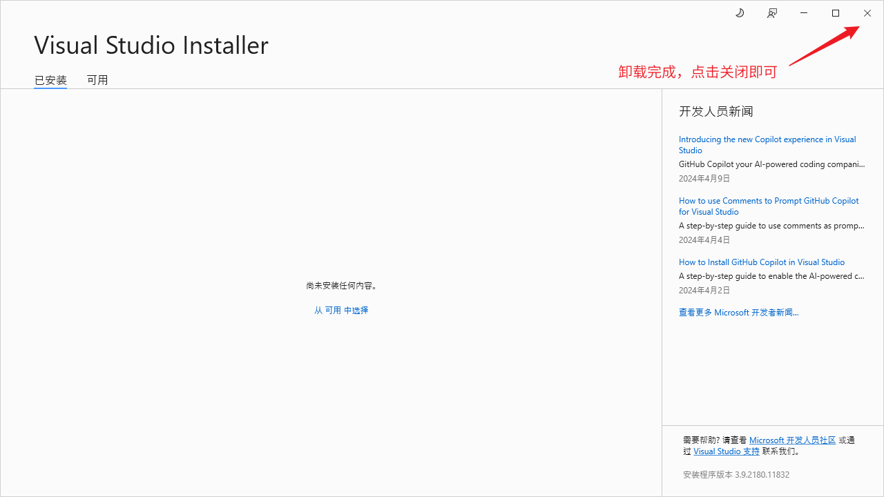6. 将Visual Studio的安装器也卸载:找到Visual Studio Installer,鼠标右键点击卸载: