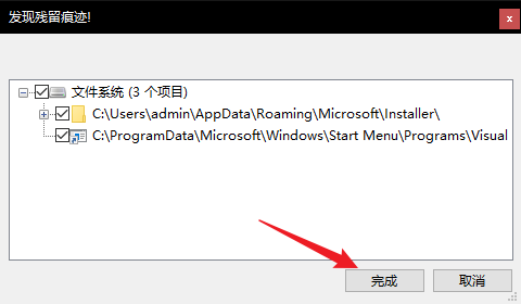9. 此时Geek扫描到残留文件,直接点击完成就会清理卸载残留:
