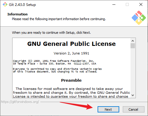 1. 双击打开安装包,此时会弹出GNU通用公共协议界面,点击Next: