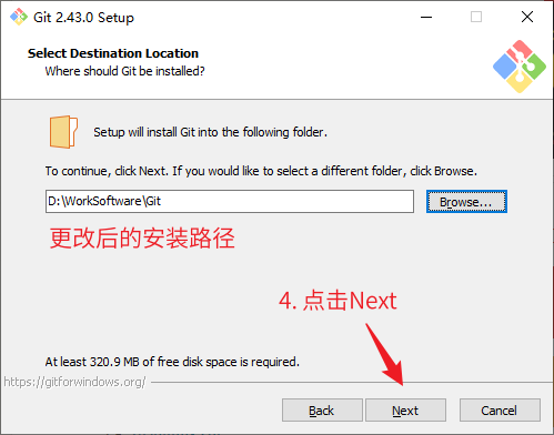 2. 点击Browse选择安装路径,这里我安装在D盘。选择好路径以后,点击Next:
