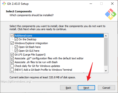 4. 选择要安装的组件:按照默认勾选即可,后面两个以(NEW!)开头的可以不勾选,完成后点击Next: