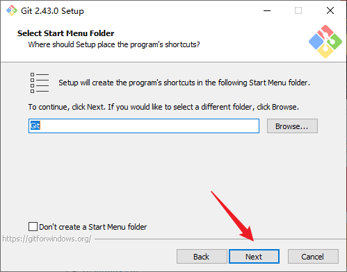 5. 选择开始菜单文件夹,如果你对此操作不熟悉的话,就不用修改任何内容。完成后点击Next: