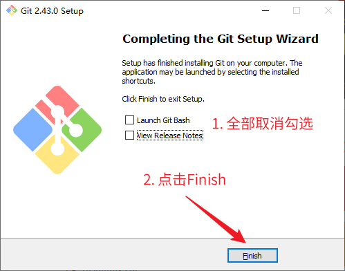 18. 安装完成,上方内容全部取消勾选,点击Finish。至此,Git安装完成:
