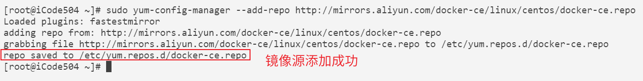 2. 接下来我们使用yum-config-manager命令设置后续 Docker 的下载源,这里我们使用国内的阿里云的下载源,执行如下命令:
