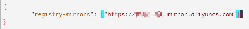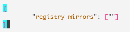 7. 将光标移动到两个中括号内部的双引号中,按ShiftInsert键粘贴前面复制的镜像加速器地址,效果图如下: