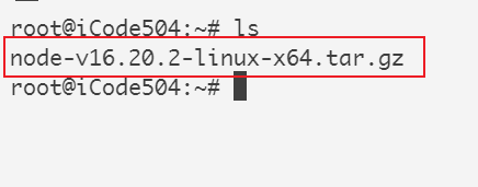 5. 等待一段时间后,下载完成,执行ls文件就可以看到当前目录下存在一个 node.js 的安装包: