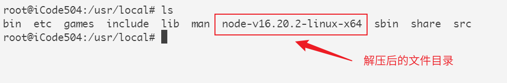8. 执行ls命令可以看到我们刚刚解压到的文件目录: