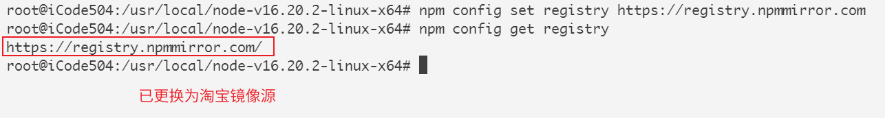 3. 再次执行如下命令,镜像源成功修改为淘宝镜像源: