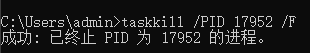 执行效果如下图,此时PID为17952对应的进程就关闭了: