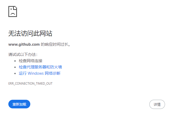 Github 是全球知名的开源宝库,但是对国内用户并不友好。当我们在浏览器中输入www.github.com时,如果你赶的时间点比较好可能会进去,但是大多数情况下浏览器不会对你的请求做出任何响应,就像下图这样: