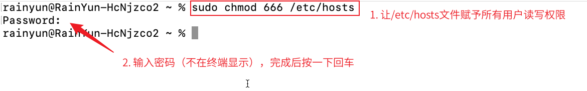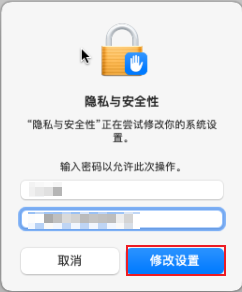输入本机用户密码(密码不在终端中显示),完成后按一下回车: