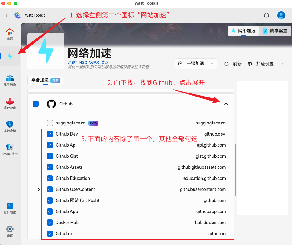 官网介绍:Watt Tookit 是一个开源的跨平台的多功能 Stream 工具箱,它可以管理你 Steam 游戏库存,监控 Steam 游戏下载进度实现自动定时关机等功能。本文要介绍的是它的网络加速功能,它内部添加了 Github 网络加速功能。