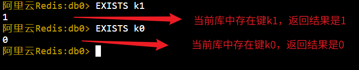 如果 key 存在,那么返回 1,不存在则返回 0: