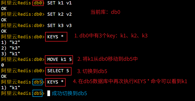 10. 将当前数据库的 key 移动到指定的数据库 db 当中: