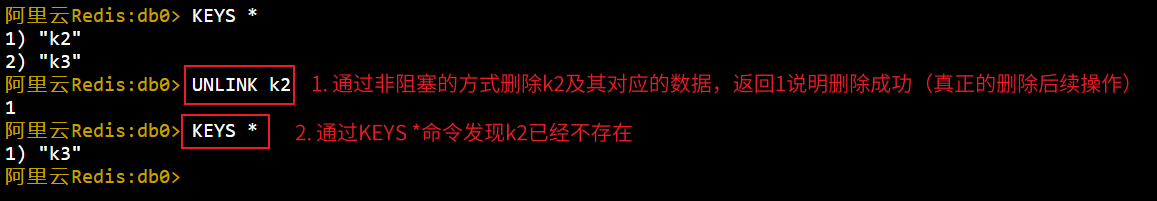 DEL 命令在删除 key 对应的数据的时候,默认是阻塞的,如果不彻底将数据删除,后续的操作将无法执行。在一些高并发系统中,这样的删除方式可能会影响到程序的正常运行。而 UNLINK 命令做到数据在“表面上”删除,真正的数据删除在后续的异步中操作。